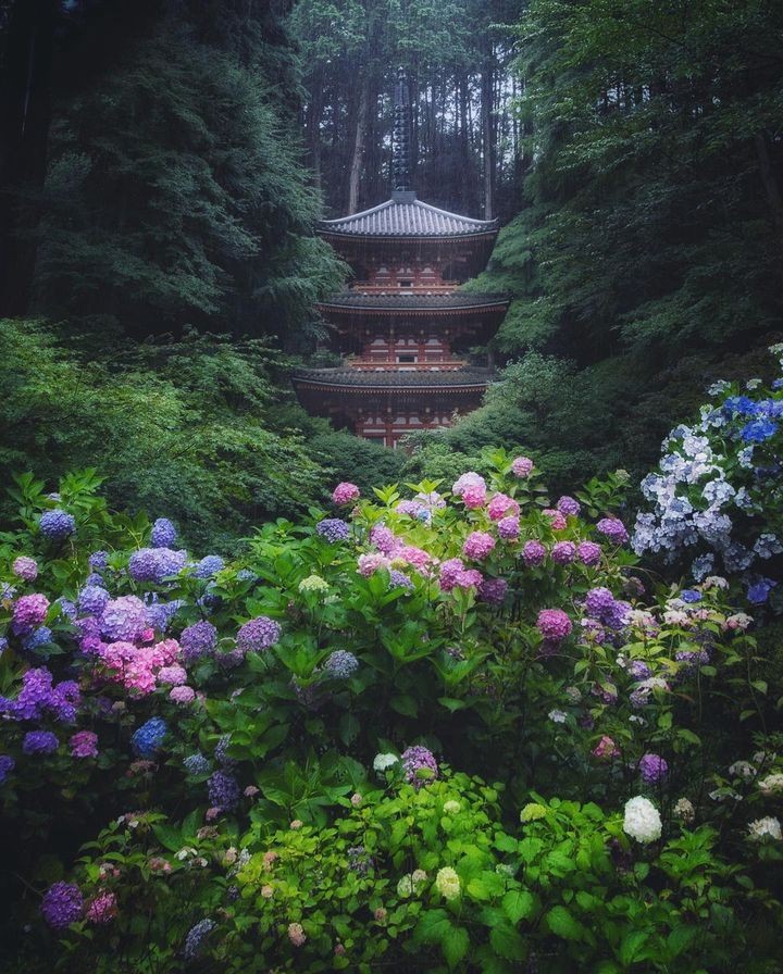 紫陽花(あじさい): cẩm tú cầu (loài hoa đặc trưng của mùa mưa)