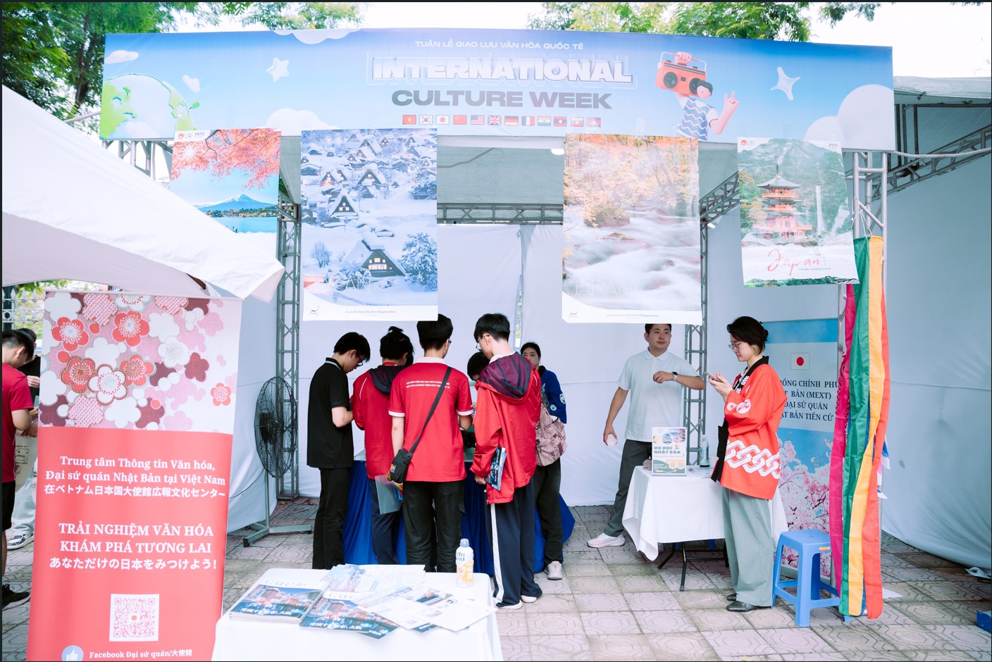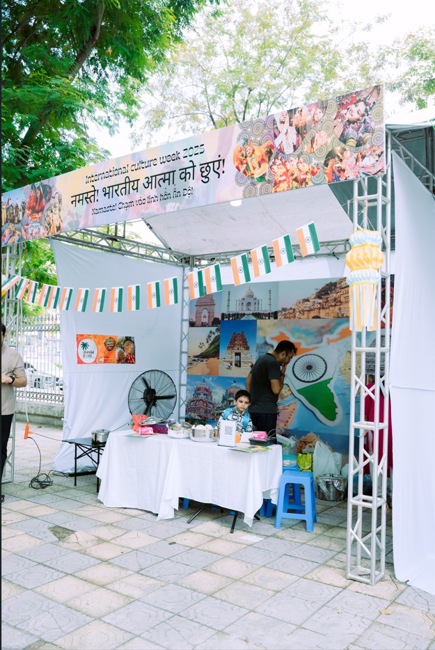 Gian hàng Nhật, Hàn, Pháp, Đức, Ấn Độ, Myanmar, Campuchia, Lào… rực rỡ sắc màu, đông vui náo nhiệt. Mỗi nơi mang một vibe riêng: từ tinh tế, ngọt ngào đến sôi nổi, phóng khoáng. Chỉ một vòng dạo quanh là đủ “chất đầy” album ảnh xịn sò.