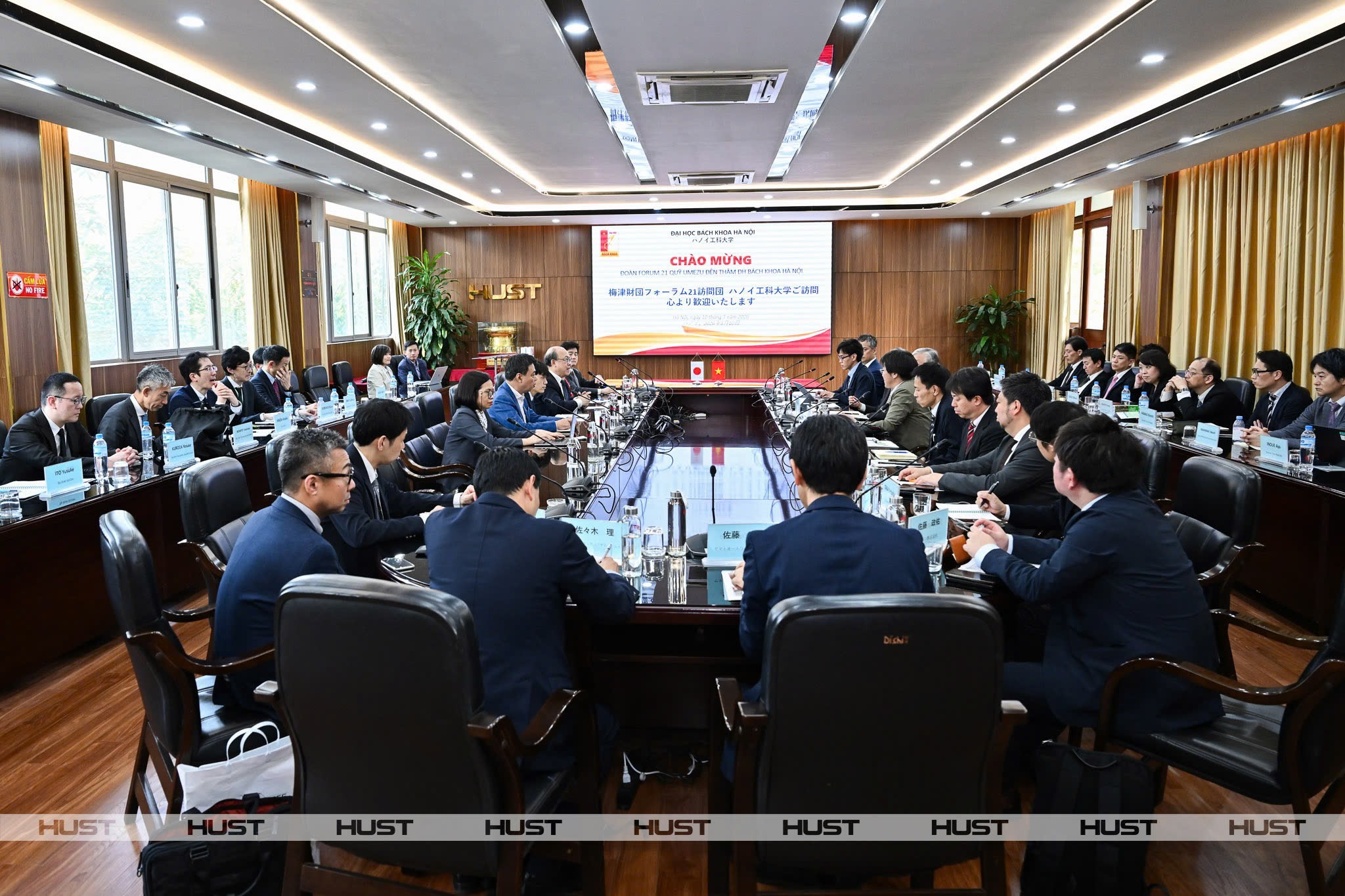 Trong Chương trình làm việc tại Hà Nội, chiều ngày 10/3/2026, đoàn FORUM 21 đã có chuyến viếng thăm và làm việc tại Đại học Bách khoa Hà Nội. Sau khi tham quan những cơ sở vật chất tiên tiến của nhà trường như Viện Nghiên cứu Khoa học Hàn HUST – Osaka, Trung tâm Nghiên cứu Khoa học Cao su (SATREPS), đoàn đã dành thời gian tìm hiểu và trao đổi về Chương trình liên kết đào tạo Cơ điện tử giữa Đại học Bách khoa Hà Nội với Đại học Công nghệ Nagaoka. Đây là chương trình được triển khai từ năm 2002 nhằm đào tạo kỹ sư cơ điện tử với chuyên môn cao và năng lực tiếng Nhật, tạo cơ hội cho sinh viên chuyển tiếp sang Nhật Bản học tập tại Nagaoka và các trường kỹ thuật trong mạng lưới hợp tác.