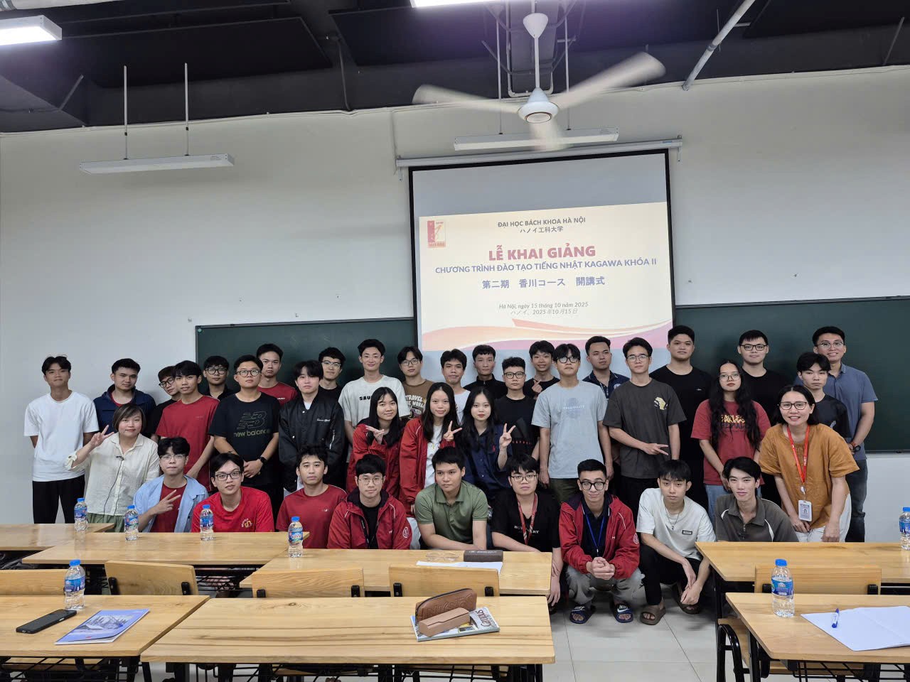 Trong khuôn khổ chương trình đào tạo tiếng Nhật miễn phí hợp tác giữa 3 bên: Tỉnh Kagawa, Hiệp hội xúc tiến tiếp nhận nguồn nhân lực nước ngoài tỉnh Kagawa, Đại học Bách khoa Hà Nội, vào ngày 15/10/2025, lễ Khai giảng Khóa II đã được tổ chức tại giảng đường C7 – ĐHBKHN.