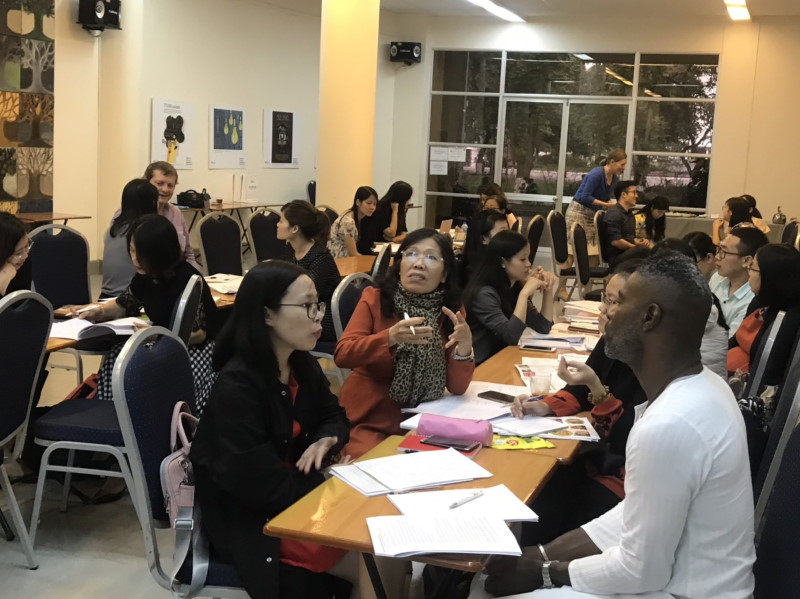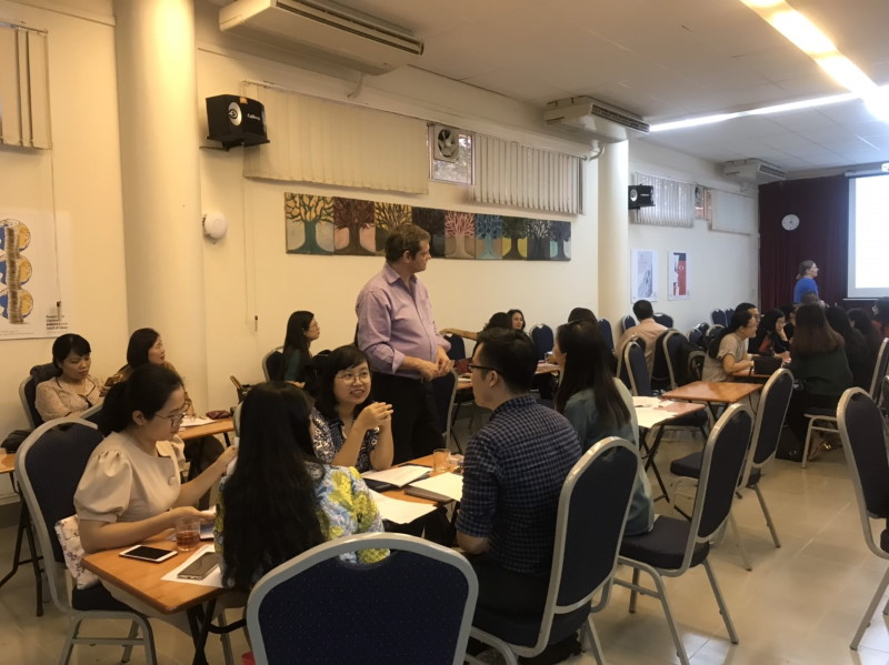 Hội thảo là dịp để các thầy cô thảo luận về các cách đánh giá trình độ tiếng Anh theo chuẩn khung 6 bậc CEFR, sự khác biệt giữa năng lực giao tiếp bằng tiếng Anh của sinh viên, làm thế nào để nâng cao năng lực tiếng Anh của sinh viên,…