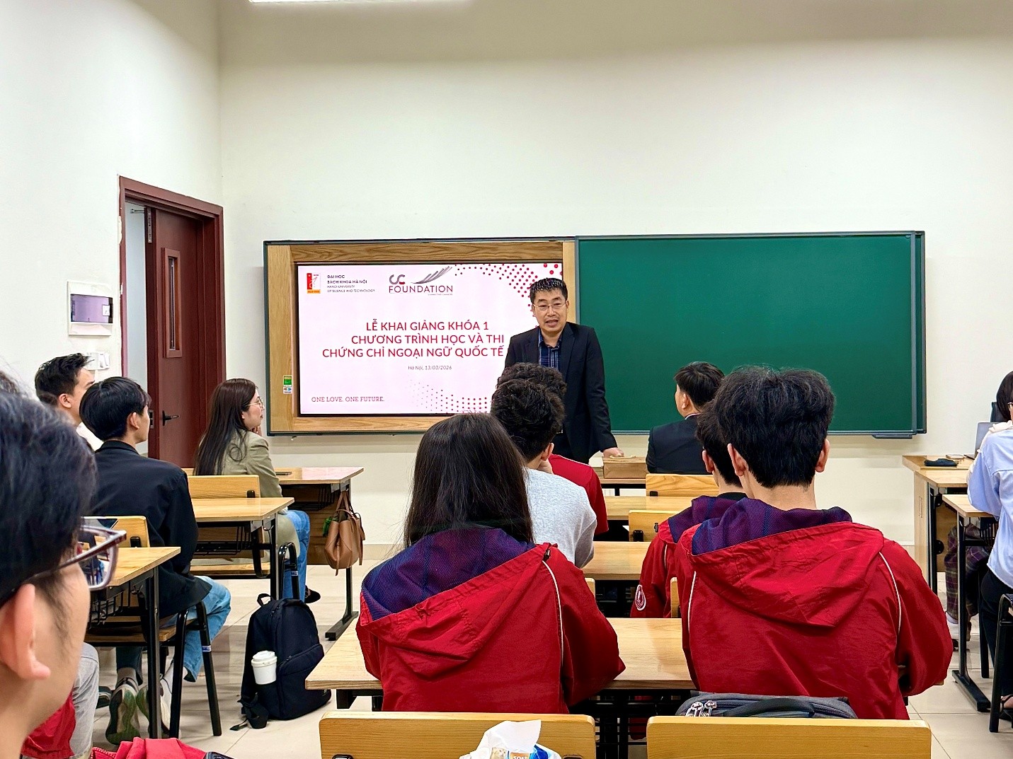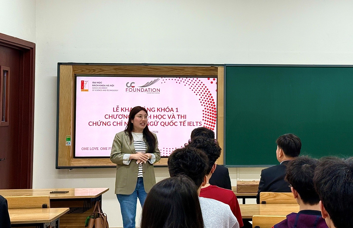 Ngày 13/03/2026, Trung tâm Khảo thí Ngoại ngữ và Trao đổi Văn hóa (CLC), Trường Đại học Bách khoa Hà Nội đã tổ chức Lễ khai giảng Khóa học và thi chứng chỉ ngoại ngữ quốc tế IELTS dành cho các sinh viên nhận học bổng theo thỏa thuận tài trợ giữa Đại học Bách khoa Hà Nội và Công ty TNHH Xã hội Chắp Cánh Foundation (CC Foundation).