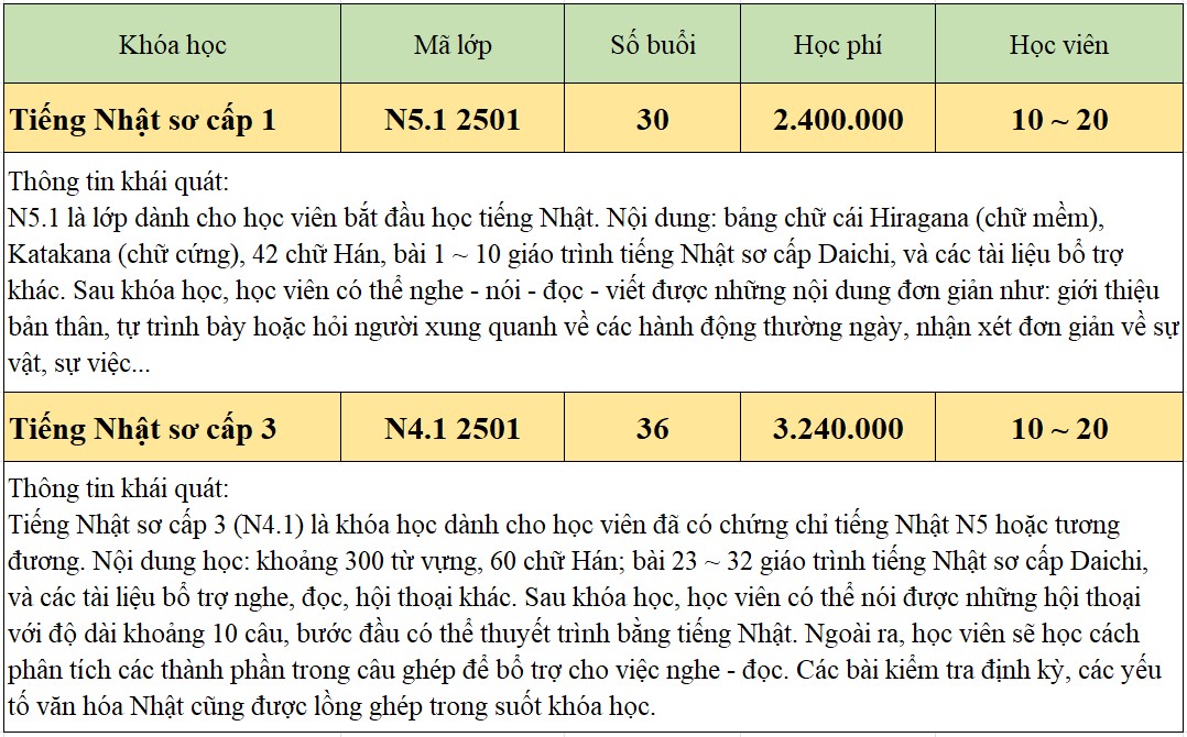 Trung tâm Khảo thí ngoại ngữ và Trao đổi văn hóa (CLC) – ĐH Bách khoa Hà Nội xin thông báo lịch khai giảng trong tháng 2/2025 của lớp tiếng Nhật như sau:
