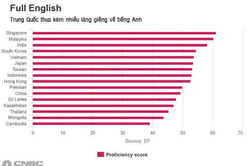 Minh Tran, giám đốc nghiên cứu khu vực Hong Kong của công ty EF – nơi thực hiện khảo sát, cho rằng ưu tiên dành cho môn tiếng Anh tại Trung Quốc đã thay đổi. Một số tỉnh, thành phố đã giảm thời lượng học Anh ngữ và kỳ thi quốc gia vào đại học cũng bớt tập trung vào môn học.