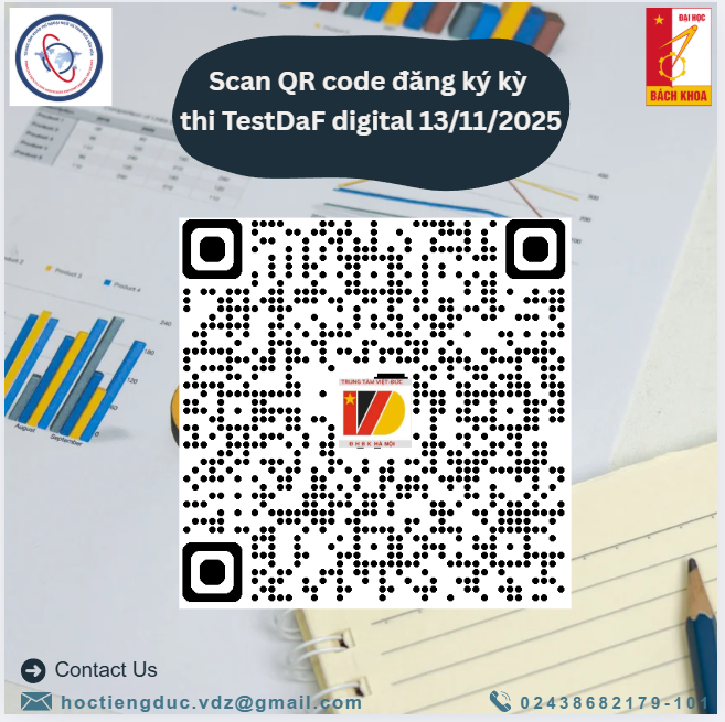 Trung tâm Khảo thí ngoại ngữ và Trao đổi văn hóa (CLC) – ĐH Bách Khoa Hà Nội phối hợp với viện khảo thí G.a.s.t. Đức – ủy quyền để tổ chức các kỳ thi TestDaF quốc tế tại Việt Nam theo lịch thi và kế hoạch thi như sau: