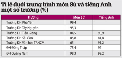 ĐH Phú Yên có tới 99,4% thí sinh có điểm thi môn Sử dưới trung bình.