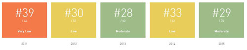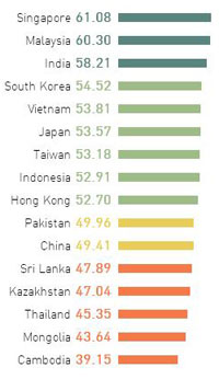 Nếu xét riêng trong khu vực châu Á, Việt Nam xếp thứ 5, sau Singapore (hạng 12), Malaysia (14), Ấn Độ (20), Hàn Quốc (27).