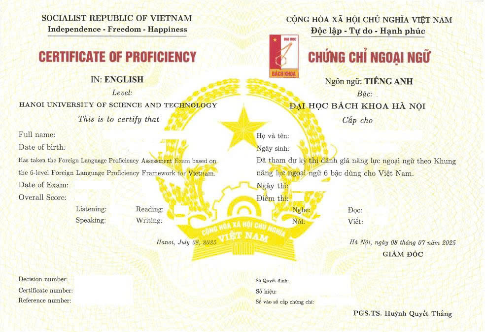 - Địa điểm tiếp nhận: Phòng 101-C3B, Trung tâm Khảo thí ngoại ngữ và Trao đổi văn hóa, Đại học Bách khoa Hà Nội.